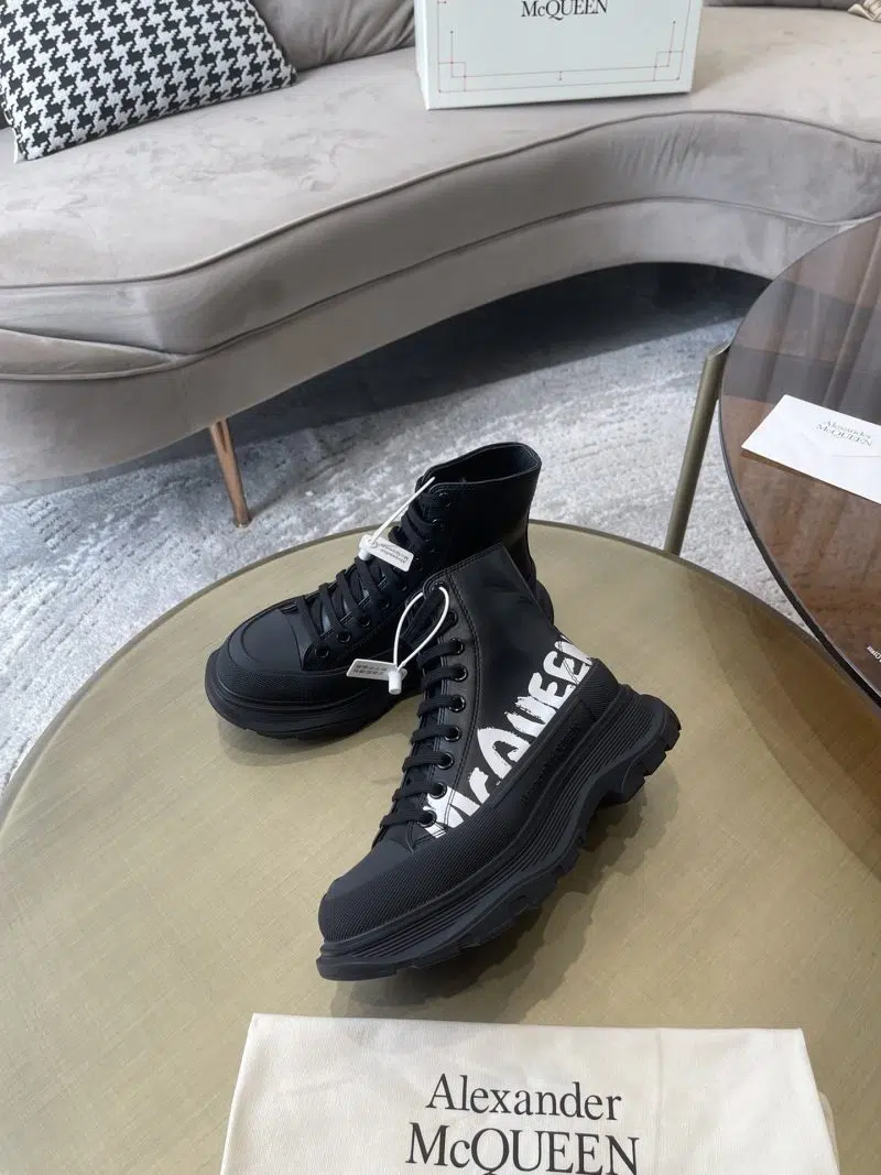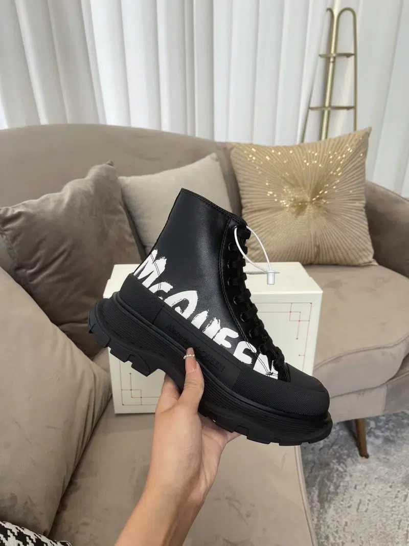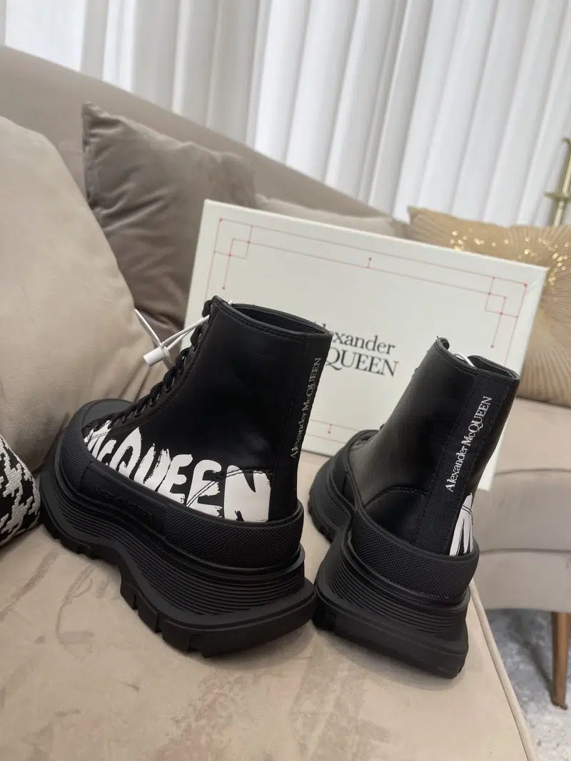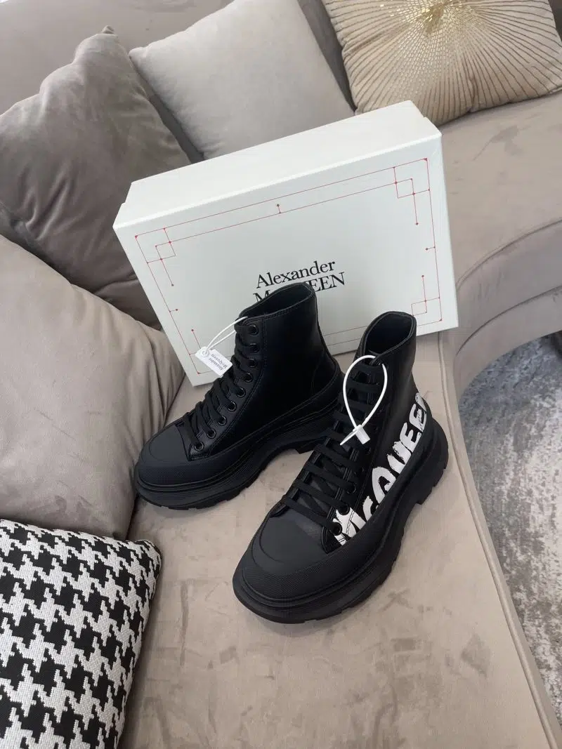 Alexander McQueen Tread Slick Boot BlackWhite Written Logo