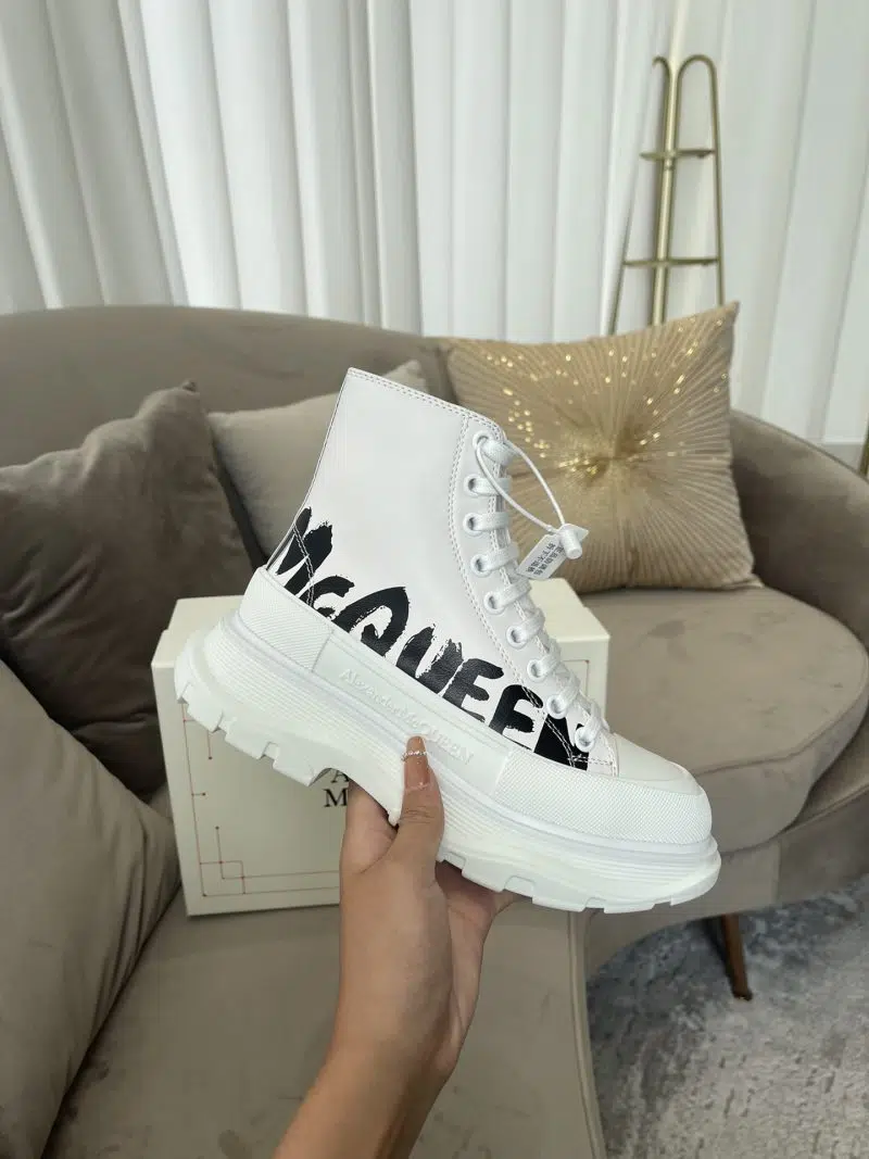 Alexander McQueen Tread Slick Boot WhiteBlack Written logo